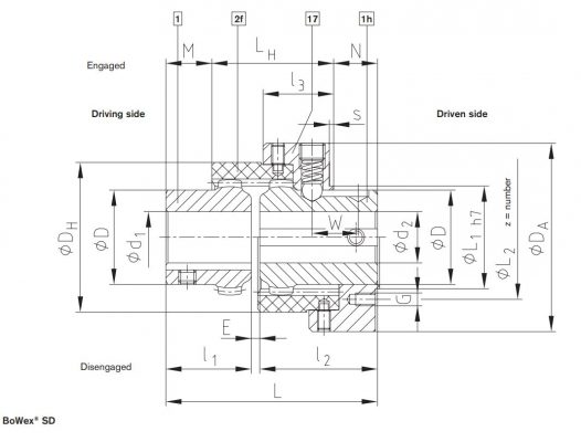 - Khớp nối bánh răng cong hai lá BoWex SD / SD-D là loại khớp nối có thể chuyển số khi dừng để tách biệt trục chủ động và trục bị động một cách dễ dàng.