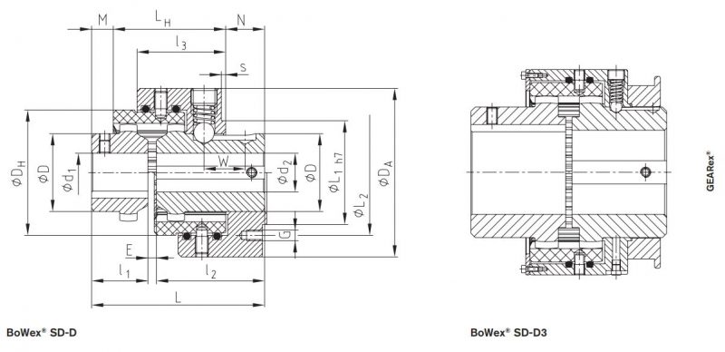 - Khớp nối bánh răng BoWex loại SD và SD-D là kết nối trục linh hoạt và không cần bảo dưỡng theo nguyên tắc hoạt động của nguyên lý bánh răng cong nổi tiếng.
