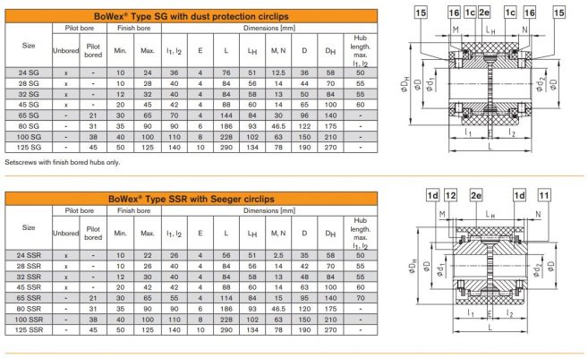 - Khớp nối bánh răng cong hai lá BoWex SSR đặc biệt thích hợp để lắp ráp và tháo rời dễ dàng