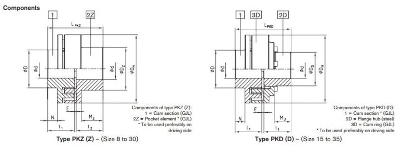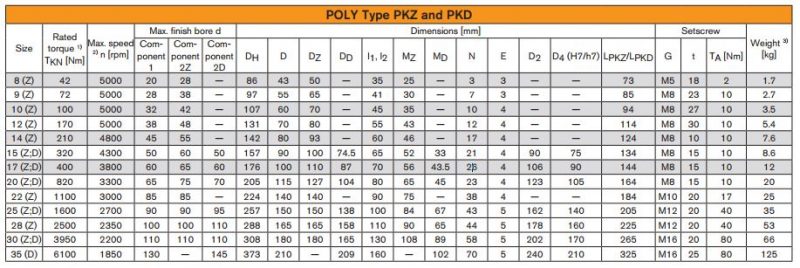 Khớp nối trục kiểu cắt, linh hoạt xoắn POLY PKZ Phiên bản tiêu chuẩn giá rẻ, hai phần và nhỏ gọn Khớp nối trục kiểu cắt, linh hoạt xoắn POLY PKZ là phiên bản tiêu chuẩn giá rẻ. Khớp nối trục POLY PKD gồm hai phần cho phép tách biệt bên dẫn động và bên bị dẫn động mà không cần dịch chuyển trục. Lợi ích là các chất đàn hồi có thể được thay thế khi lắp ráp. Bên cạnh đó, mặt lái và mặt dẫn động có thể được lắp ráp và tháo rời một cách xuyên tâm.