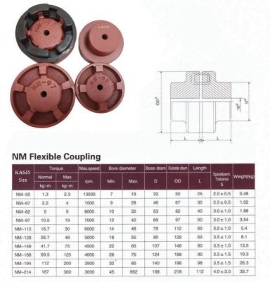 Các khớp nối NM được cung cấp trong nhiều loại kết hợp lỗ khoan / rãnh then hoa lớn nhất trong ngành. Các khớp nối này không cần bôi trơn và cung cấp dịch vụ có độ tin cậy cao cho các ứng dụng truyền động cơ điện nhẹ, trung bình và nặng và các ứng dụng truyền tải điện đốt trong. Các ứng dụng bao gồm truyền lực đến các thiết bị công nghiệp như máy bơm, hộp số, máy nén, máy thổi, máy trộn và băng tải.