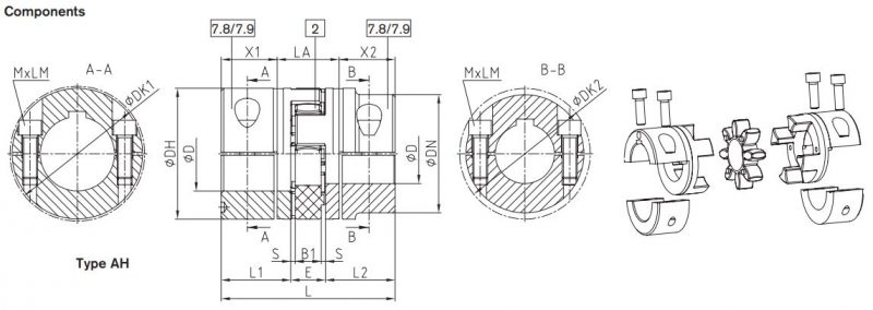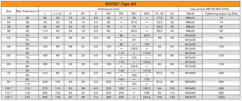 ROTEX® AH khớp nối linh hoạt dạng xoắn với các hub tách rời: