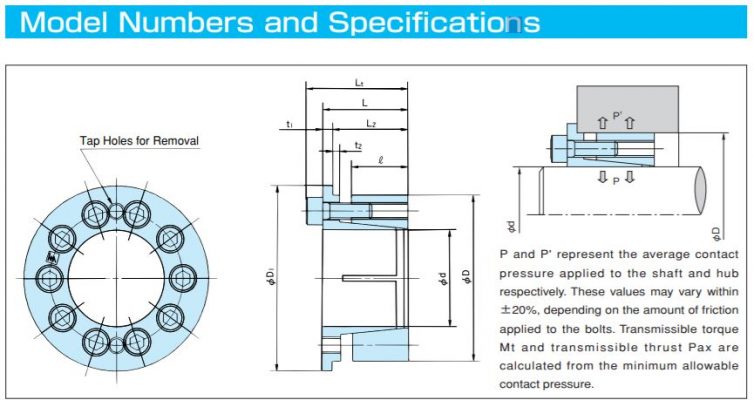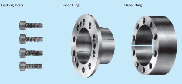 Thiết bị khóa trục côn Tsubaki Power Lock dòng tiêu chuẩn AE Series:Thiết bị khóa shafthub dòng AE “Power-Lock” được cấu tạo đơn giản gồm ba phần sau: vòng trong và vòng ngoài và một vài chốt khóa. Chỉ cần siết chặt các bu lông này để đạt được kết nối hoàn toàn an toàn. |